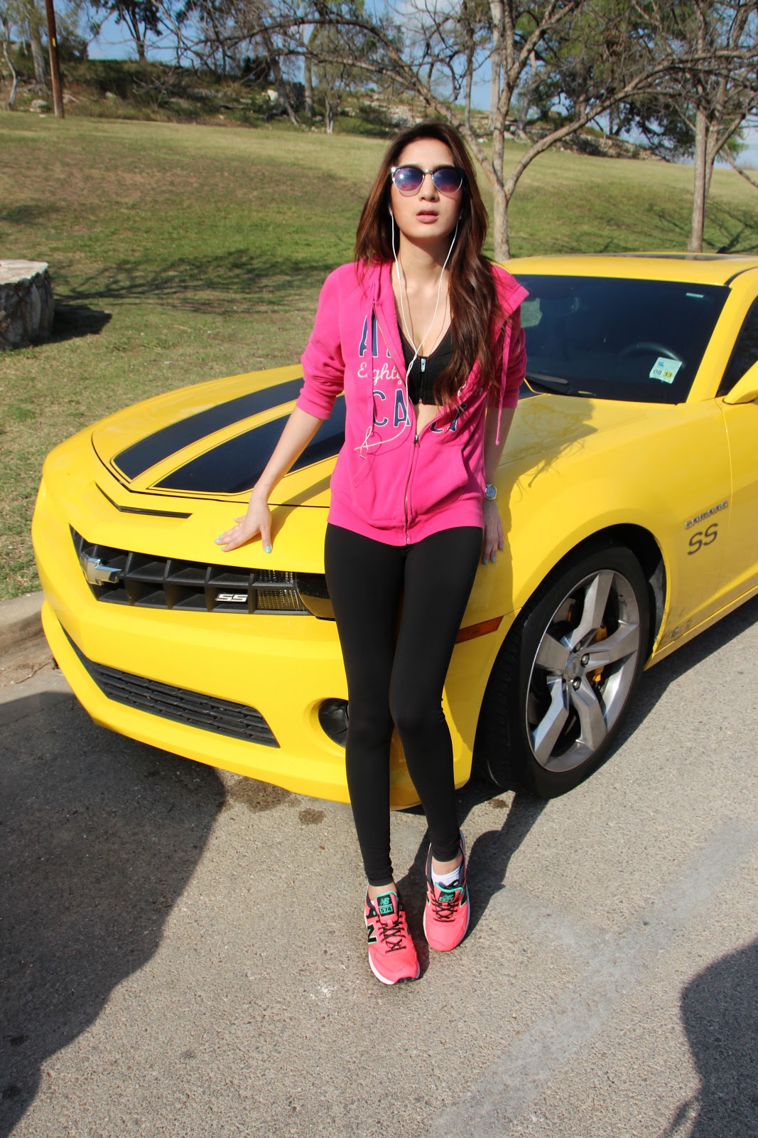 (Sport Bras & Pants :: Victoria’s Secret, Watch :: Techno Marine, Jacket :: Aeropostale, Shoes :: New Balance 574, Sunglasses :: from Ross (same blog post here))